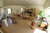 Neben den vier Gruppenräumen (jede Gruppe besitzt noch einen Gruppenraum) sind Schlafräume und Waschräume vorhanden. In jeder Gruppe befinden sich verschiedenen Bereiche. Die Materialien aus den einzelen Gruppenräumen werden immer mal wieder ausgetauscht, sodass diese Materialien für die Kinder dauerhaft interessant bleiben.